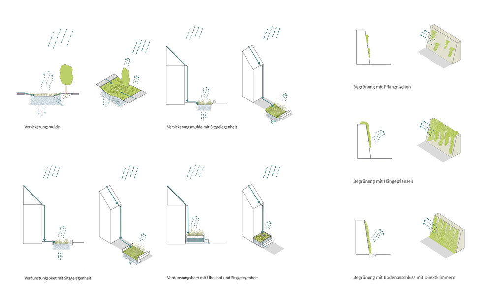 Im Auftrag der Stadt Marburg wurde ein Klimaanpassungskonzept entwickelt, das Stadtgestaltung und wassersensible Freiraumentwicklung miteinander verbindet. Grundlage bildet eine umfassende Analyse von Stadtklima, Topographie, Bebauungs- und Entwässerungsstruktur. Aufbauend darauf wurden eine Blaue und eine Grüne Strategie formuliert, die Regenwasser als Ressource zur Kühlung, Bewässerung und Überflutungsvorsorge nutzt. Zentrales Ergebnis ist eine flexibel anwendbare Toolbox mit Maßnahmen für Gebäude, Plätze, Gassen und Mauern, ergänzt durch ein vertiefendes Umsetzungskonzept für den Lutherischen Kirchhof und das angrenzende Wegenetz.