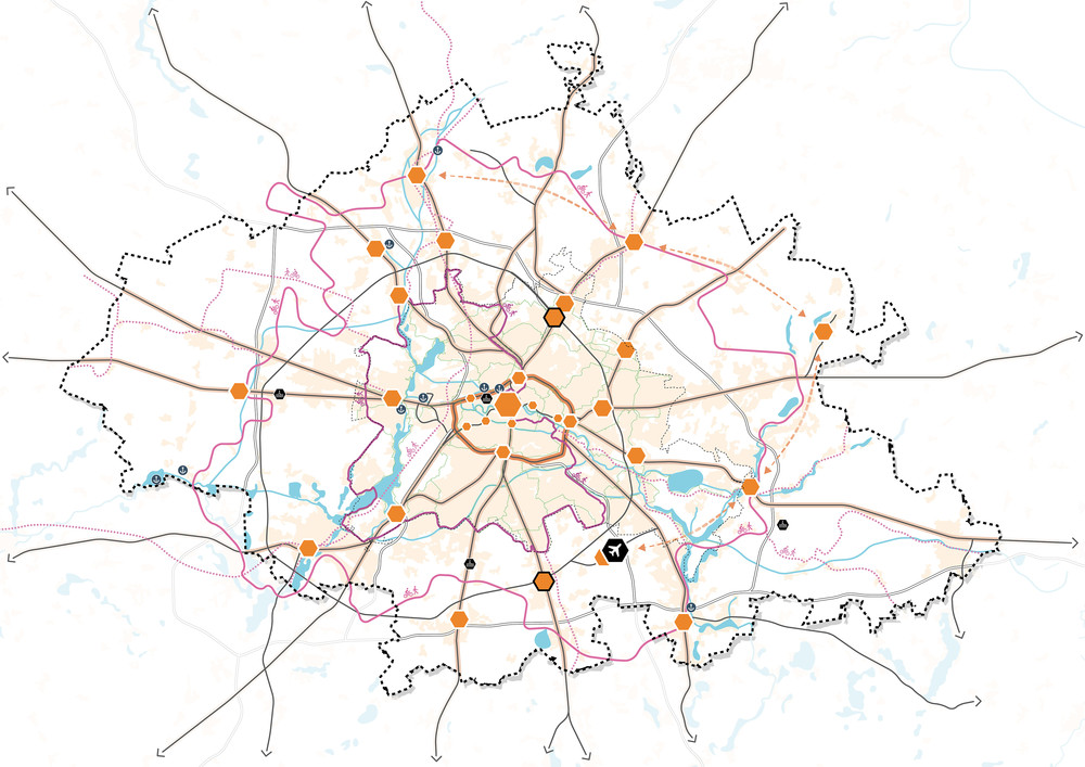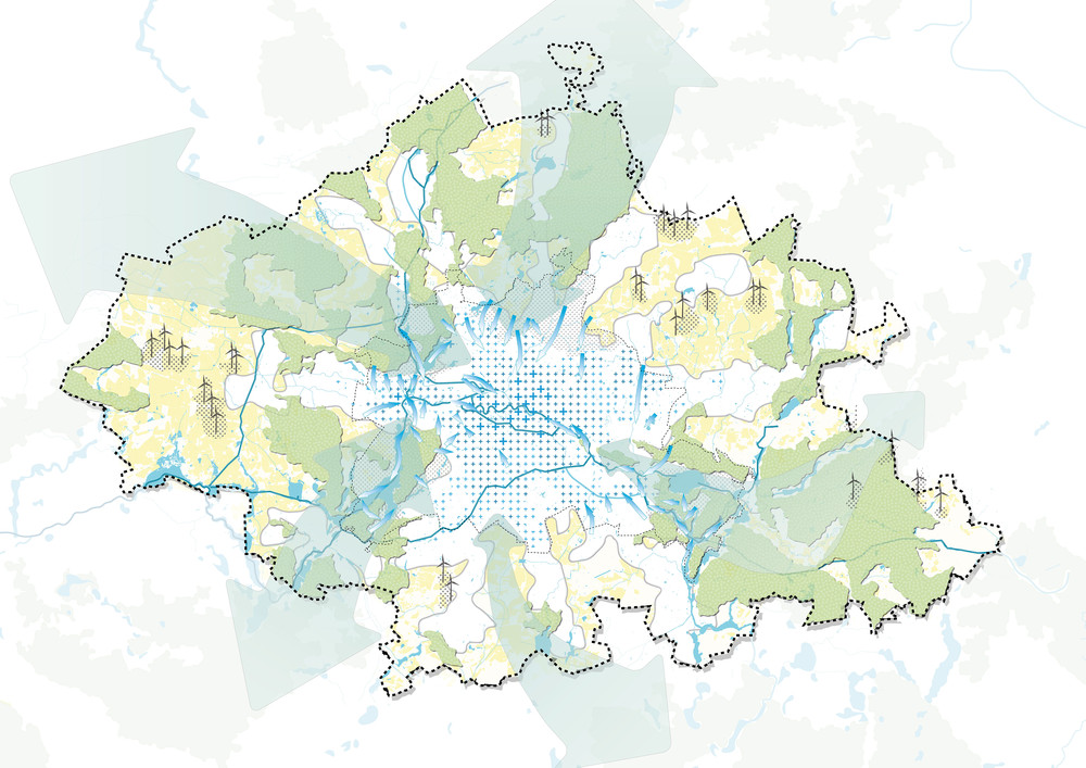 Das Leitbild formuliert vier zentrale Zukunftsaufgaben und übersetzt diese in ein integriertes räumliches Gesamtbild für die Region. Im Fokus stehen resiliente Landschaften, eine ausgewogene Siedlungsentwicklung, stärkere regionale Vernetzungen sowie die Qualifizierung gemeinsamer Freiräume als verbindende Elemente der Hauptstadtregion.