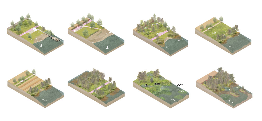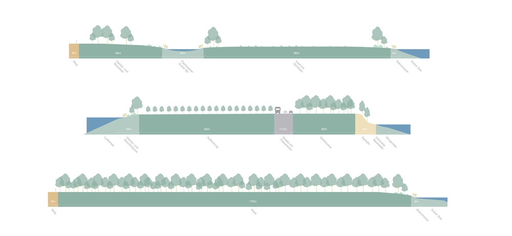 Ziel des REK Erfurter Seen ist es, einen informellen planerischen Rahmen als Wegweiser für eine prozessuale Entwicklung der Seenlandschaft bis zum Ende der Abbautätigkeiten (ca. 2085) zu schaffen. Im Fokus steht die Frage, wie konsensfähige Nutzungsanordnungen mit Mehrwert durch die Rekultivierung der Kiesabbaufolgelandschaft im Erfurter Norden entstehen können und welche Maßnahmen – für die Zeitpunkte ‚Heute‘ (bis 2025), der ‚nahen Zukunft‘ (2025-2040) und der ‚fernen Zukunft‘ (2040-2060) – erforderlich sind um den Herausforderungen einer integrierten Entwicklung von Landschaft, Städtebau, Mobilität, Tourismus-, Rohstoff-, Agrar- und sonstiger Wirtschaft gerecht zu werden. Die unterschiedlichen Betrachtungszeiträume ermöglichen überprüfbare Zwischenziele, vergrößern die Planungssicherheit und stärken die Motivation der Öffentlichkeit und beteiligten Akteure für die langfristige Entwicklung. Die Perspektive 2040 lässt Spielraum für ‚schnelle Erfolge‘ (Quickwins) im ‚Heute‘und die Gewissheit, dass ein langer Atem erforderlich ist. Im Ergebnis wurde ein abgestimmtes Leitbild unter Berücksichtigung von Abbauprozessen und Rekultivierungsdynamiken entwickelt. Das Konzept skizziert unter anderem elf Schlüsselmaßnahmen und 19 Leitprojekte, die den Handlungsrahmen für die kommenden Jahrzehnte darstellen.