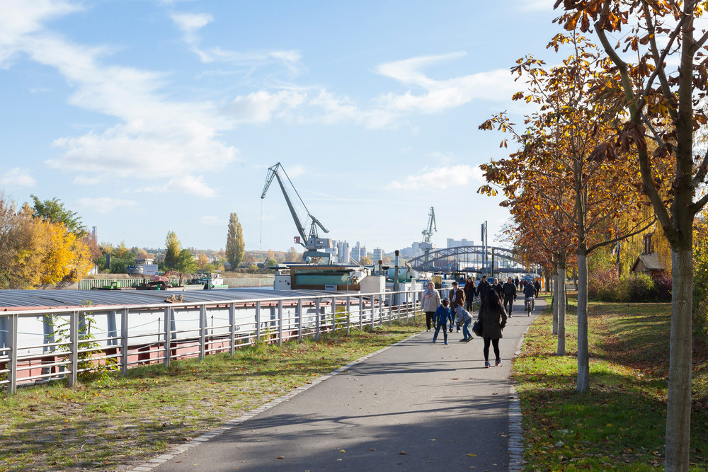 Der Havel-Radweg ist ein wichtiger Bestandteil des Fahrradroutennetzes in Berlin und Brandenburg. Das Stadtbild verändert sich im Wegeverlauf. Der Havel-Radweg führt flussbegleitend durch die Uferlandschaft vorbei an Wohnbauflächen, Industrie- und Hafenanlagen. Bgmr realisierte die Teilabschnitte Schleuse, Lindenufer, Schifffahrtsufer, Burgwallgraben, Weinmeisterhorn, Große Badewiese, Ernst-Liesegang-Ufer und Imchenallee. Dabei geht die Radwegeführung in den jeweiligen Abschnitten auf sein Umfeld ein. Ausgehend von den vorhandenen Stichwegen und großen Bestandsbäumen wird der Weg in einem gemeinsamen Fuß- und Radweg oder in separaten Wegen für Fußgänger und Radfahrer geführt. An den Kreuzungsbereichen mit Stadtzugängen liegen kleine platzartige Aufweitungen mit Sitzgelegenheiten.