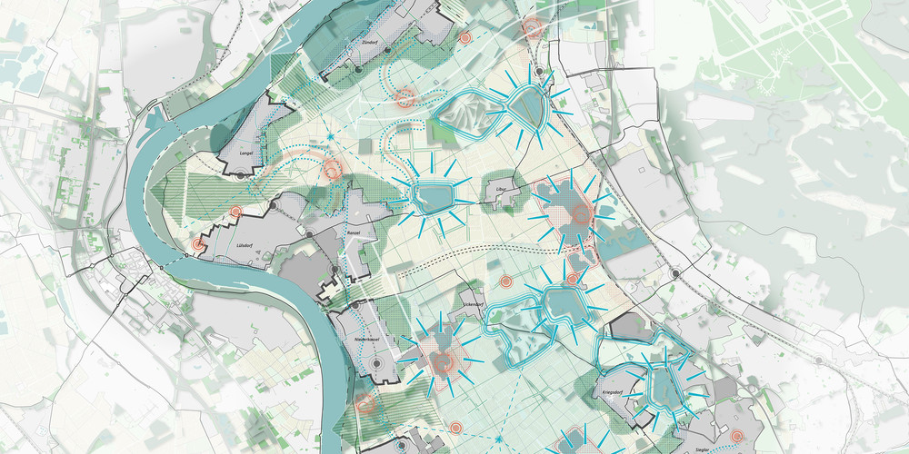 Am Werdersee in Bremen unmittelbar hinter dem Deich, entsteht auf dem ca. 2,5 ha großen Gelände der ehemaligen Scharnhorst-Kaserne ein neues Wohnquartier mit 214 Wohnungen. Blau-grüne Dächer, die Betierung und Begrünung geeigneter Fassaden, sowie ein auf Rückhaltung und Nutzung ausgerichtetes Regenwassermanagement, schaffen Synergien zwischen Freiraum- und Gebäudeentwicklung.