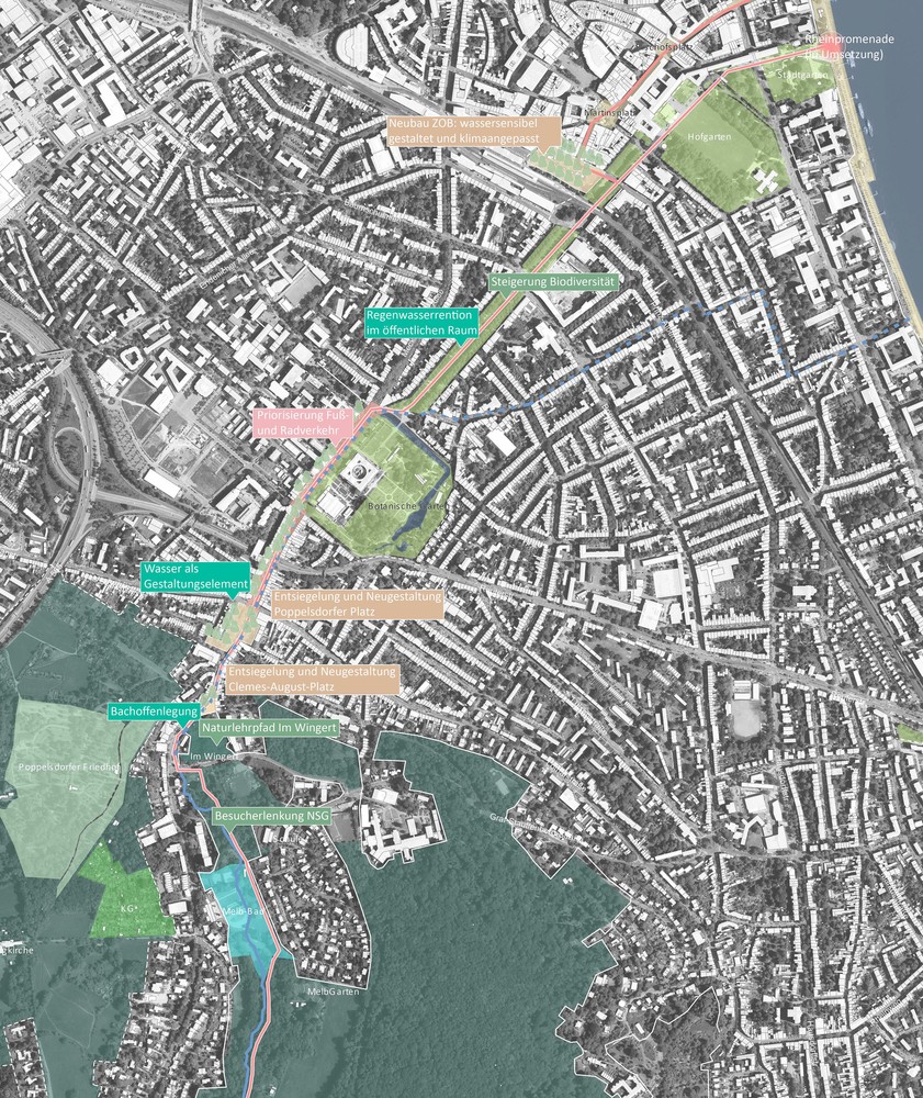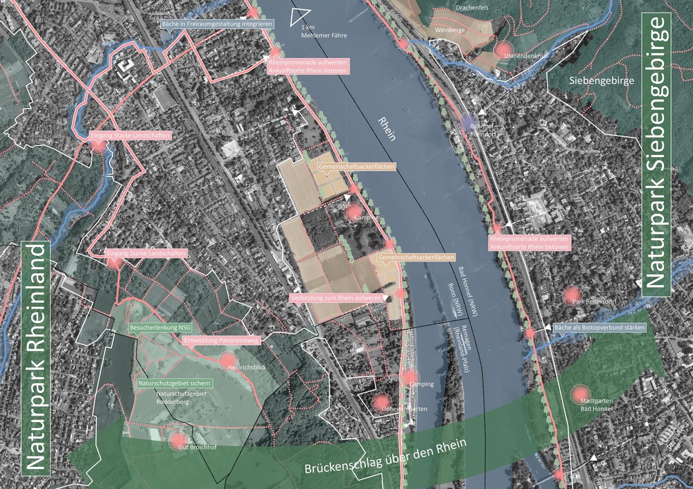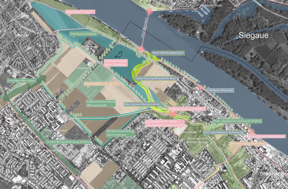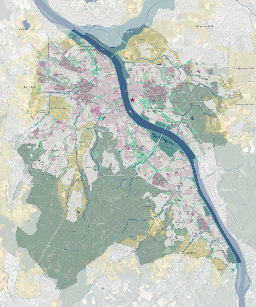Der Bonner Freiraumplan beschreibt die gesamte Oberfläche der Stadt als zusammenhängenden Freiraum und formuliert eine gesamtstädtische Strategie zur Sicherung und Weiterentwicklung urbaner Landschaften. In einer wachsenden Stadt unter zunehmendem Nutzungsdruck und den Herausforderungen des Klimawandels werden Freiräume als zentrale Infrastruktur für Klimaresilienz, Biodiversität, Gesundheit und soziale Teilhabe verstanden.