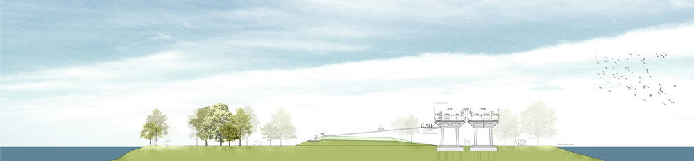 Die anstehende Sanierung des Südschnellweges in Hannover bietet die Chance, den Straßenraum mit seinen Begleiträumen zu verändern und aus einem monofunktionalen Verkehrsraum einen mehrfachcodierten Raum zu entwickeln. Die Leistungsfähigkeit wird in Bezug auf den KFZ-Verkehr durch die abschnittsweise Tunnellösung gewährleistet und gleichzeitig mehr Bewegungs- und Aufenthaltsraum Raum für Fußgänger und Radfahrer angeboten. Die Straße wird so aus unterschiedlichen „Mobilitätsperspektiven“ qualifiziert. Im urbanen Raum begleiten Alleebepflanzungen die Fahrbahnflächen. Im Bereich der Landschaft ändert sich das Motiv, die begleitende Landschaft wird zum visuellen Kulissenraum. Die Straßenraumgestaltung korrespondiert auf den jeweiligen städtischen und landschaftlichen Kontext. Mit der Umgestaltung des Südschnellweges als Stadtboulevard werden im urbanen Kontext neue Baufelder generiert, die Straße zu einer Stadtstraße umgebaut. In der Landschaft gelingt es durch die Neugestaltung der Brücken die Trennwirkung des Schnellwegs zu mindern und die zerschnittenen Landschaftsräume zu verknüpfen.